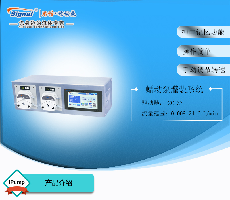 此灌裝系統由2通道組成,通道數量可定制,大可擴展至32通道;可安裝YZ15、YZ25泵頭;