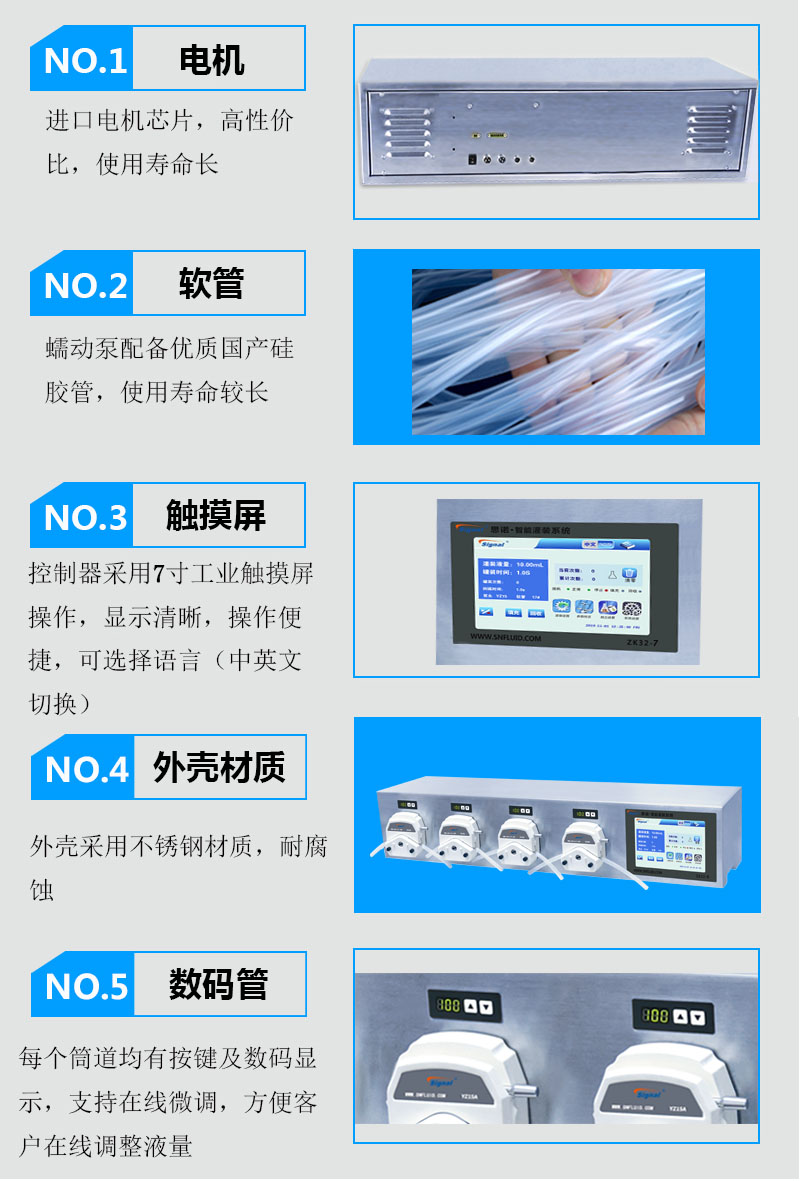 2.外殼采用不銹鋼材質(zhì),耐腐蝕。每通道均有按鍵及數(shù)碼顯示,支持在線微調(diào),方便客戶在線調(diào)整液量