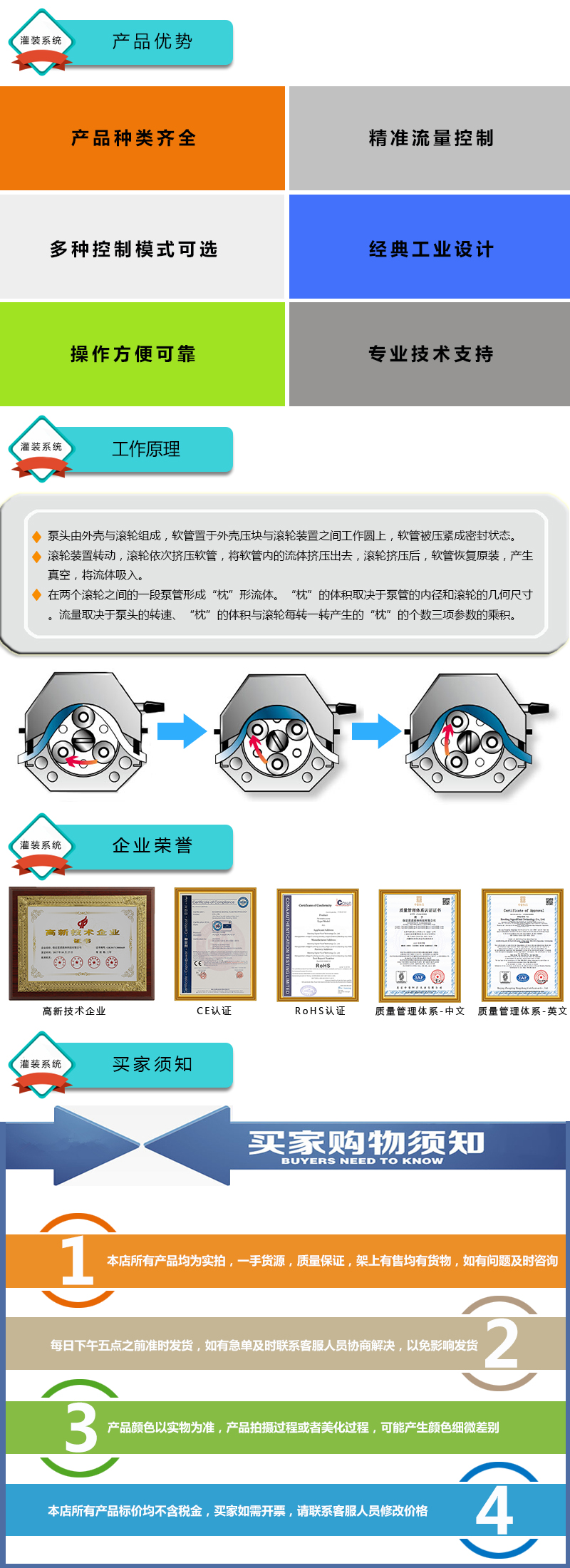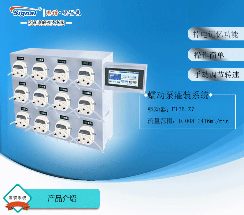 1.灌裝系統由5組基本通道,通道數量可定制(可擴展至32通道),一臺控制器組成,可安裝YZ15、YZ25泵頭