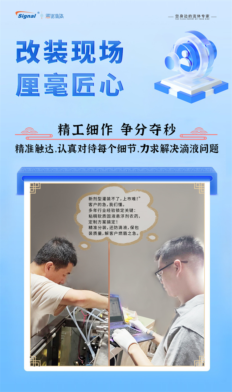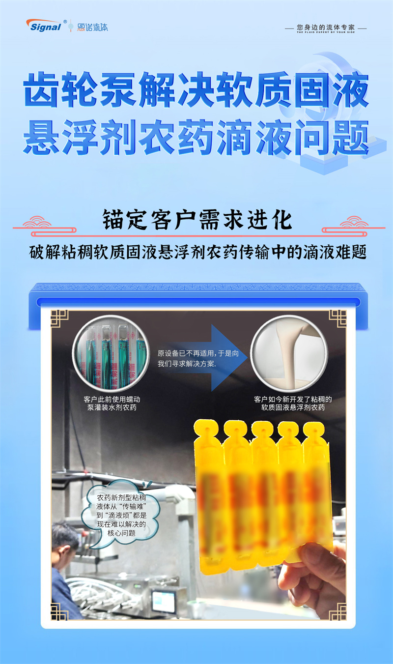 一位長期使用我司蠕動(dòng)泵灌裝水劑農(nóng)藥的老客戶,因新開發(fā)粘稠的軟質(zhì)固液懸浮劑而面臨設(shè)備瓶頸,我們迅速響應(yīng),為其量身推薦了更優(yōu)解決方案——高性能齒輪泵灌裝系統(tǒng)。