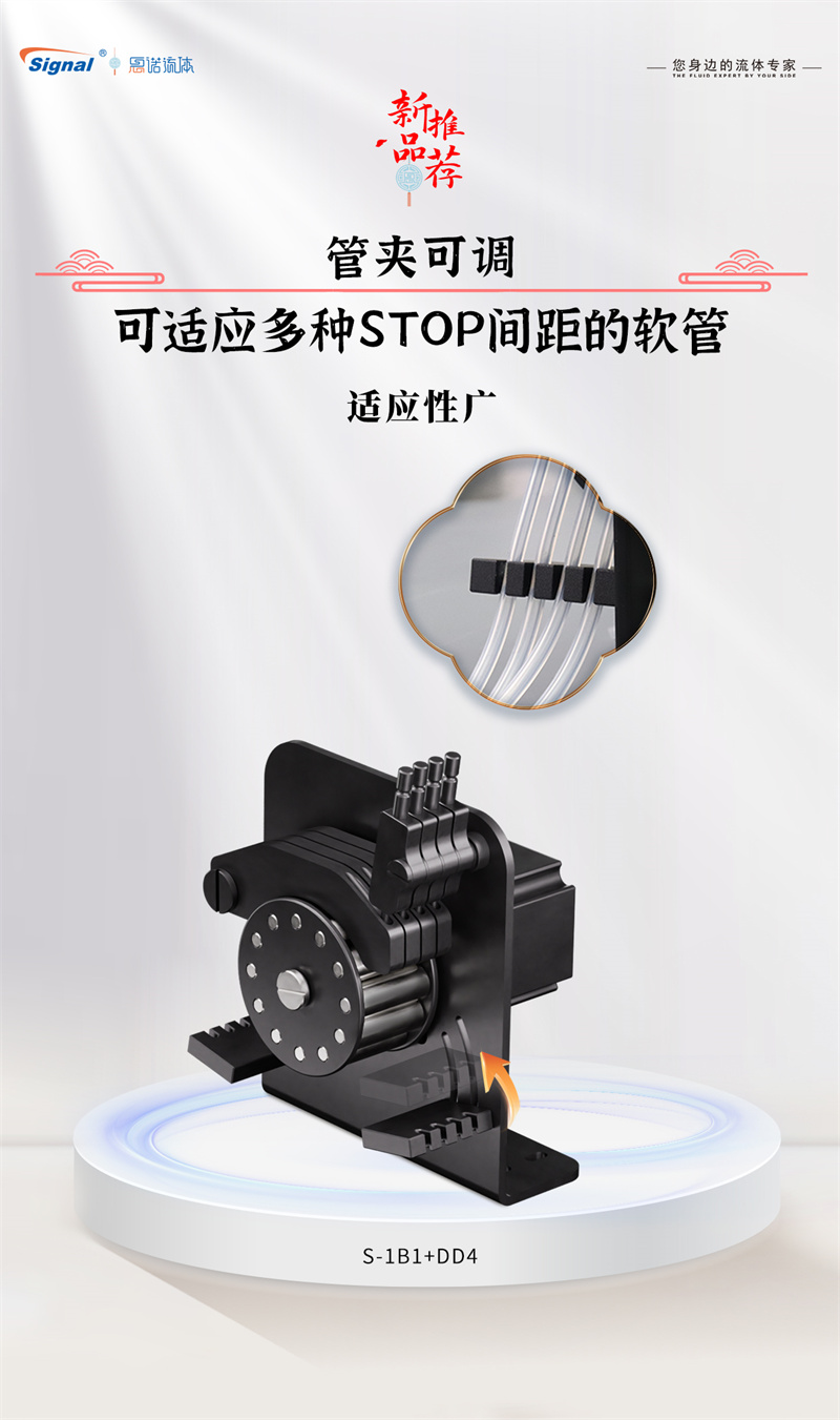 在該系列蠕動泵中,S-1B1+DD4蠕動泵管夾具備可調(diào)功能,兼容多種STOP間距的軟管,大大增強了產(chǎn)品的適用性與靈活性。
